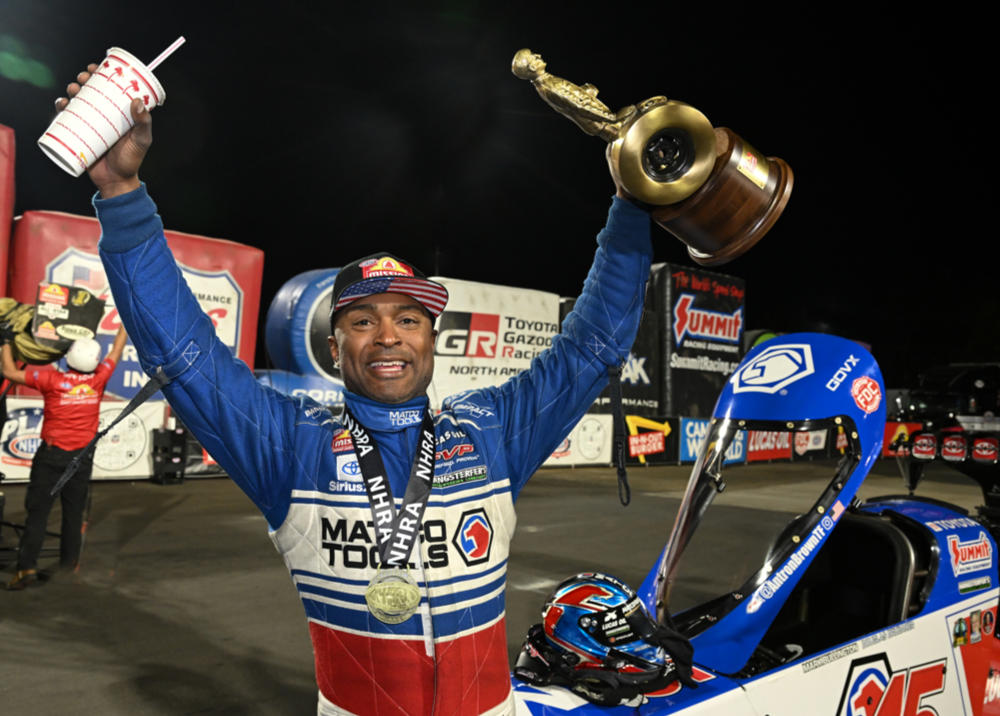 Then, we have Antron Brown. The long-time Top Fuel racer, champion in 2012, 2015, and 2016, won his fourth series title in 2024. Antron counted on crew chief Brian Corradi to tune the AB Racing Matco Tools Top Fuel Dragster for the performance and consistency needed to win six National Events on the way to the title.