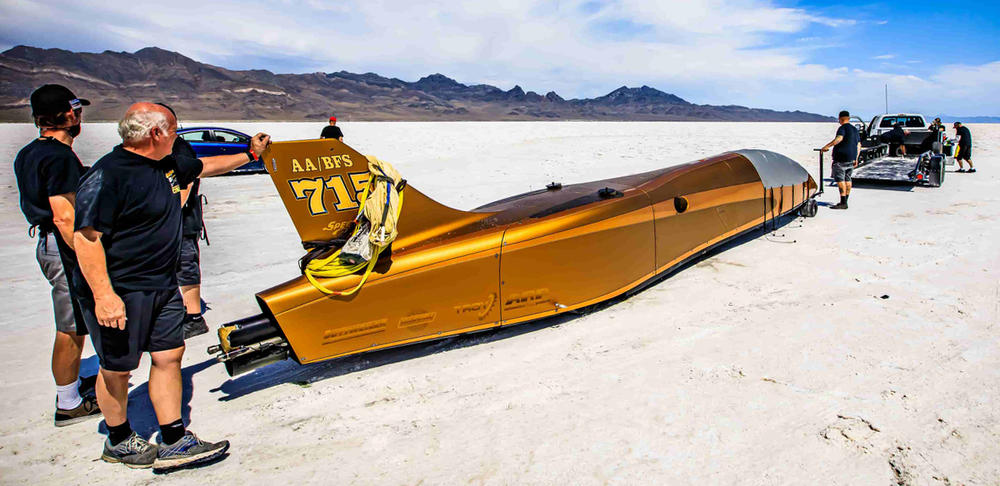 14 Aug 2020. The BME-equipped Speed Demon after George Poteet did a two-run average of 470.015 mph to set a new AA/BFS recod. Image: Speed Demon Racing